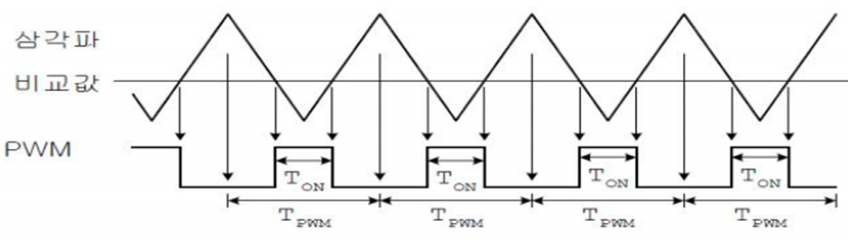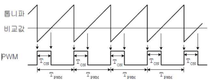 | Fast PWM | 16MHZ | 64 | 비교 일치가 발생하면 출력은 OFF, BOTTOM(0)에서 출력은 ON |