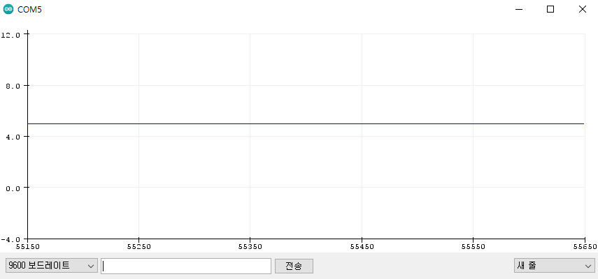 analogWrite(255)일 때는 digitalWrite(HIGH)로 출력되도록 설정되어 있으므로 출력은 5V(HIGH)로 나타났다.