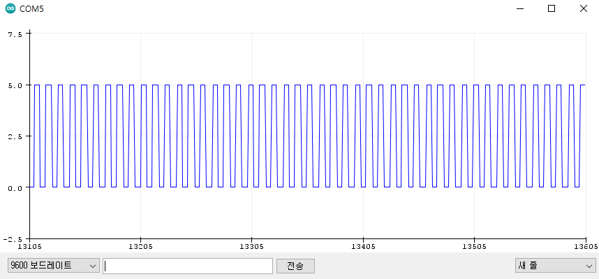 아래 코드에서 아날로그 값을 0~255 값을 넣어 6번 핀(또는 9번 핀)과 아날로그 입력 핀인 A0 핀을 연결하여 '시리얼 플로트'를 열면 개략적인 PWM 파형을 확인할 수 있다.
